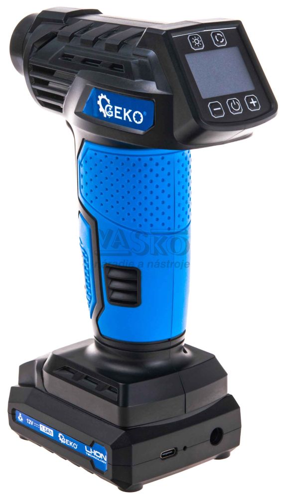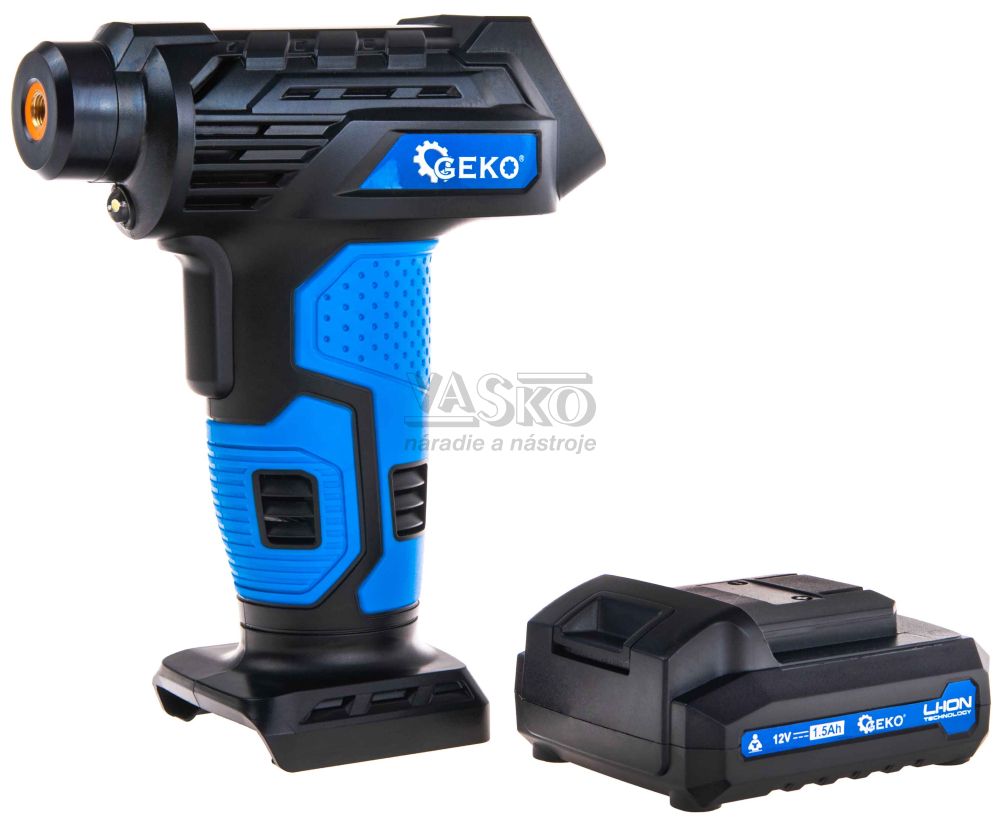 - Akumulátorový kompresor 0,2-10,3 Bar, 12V, 1.5Ah batéria, 23l/min, LCD display, GEKO