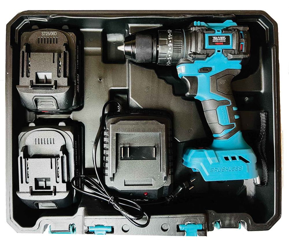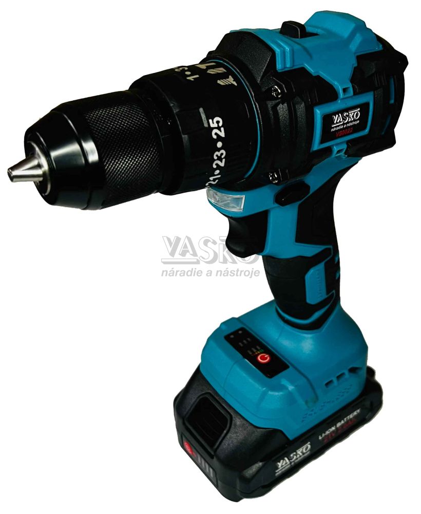 - Akumulátorový vŕtací skrutkovač, 2x 2Ah batéria, 1x nabíjačka, 42Nm VASKO