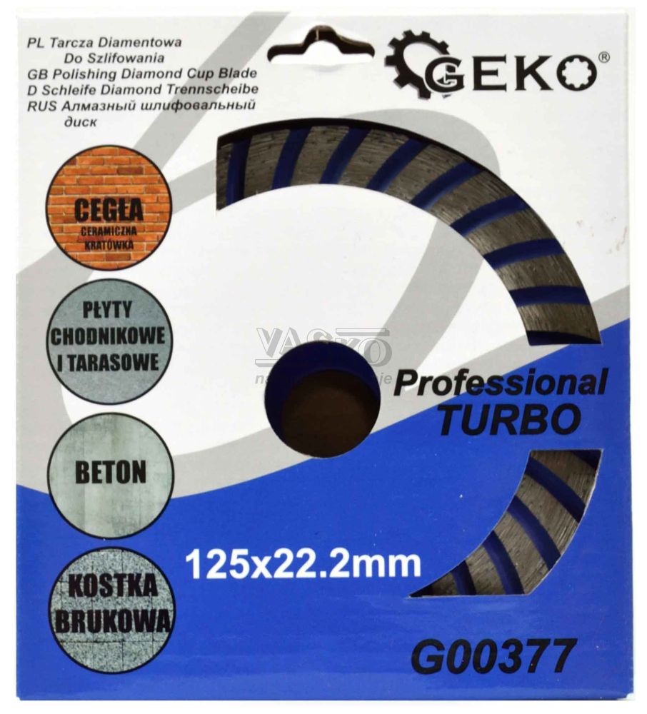 Brúsny diamantový kotúč bez závitu - Turbo GEKO 125 mmDiamantový kotúč je ideálny na brúsenie betónu a podobných povrchov. Odstráni všetky nerovnosti a nečistoty.