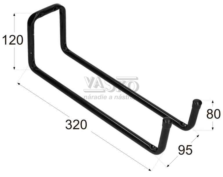 - Rozmery: dĺžka 320 mm; šírka 90 mm; výška 120 mm; priemer rúrky 12 mm; hrúbka steny rúrky 1,0 mm