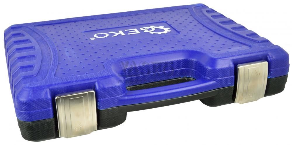 G10100 Gola sada GEKO 1/2 "a 1/4" 94 ks. Univerzálna súprava určená pre servis, služby, ako aj pre domáce použitie. Kľúče sú vyrobené z vysoko kvalitnej chróm-vanádiovej ocele..Celok je zabalený v estetickom plastovom puzdre s kovovými klapkami.