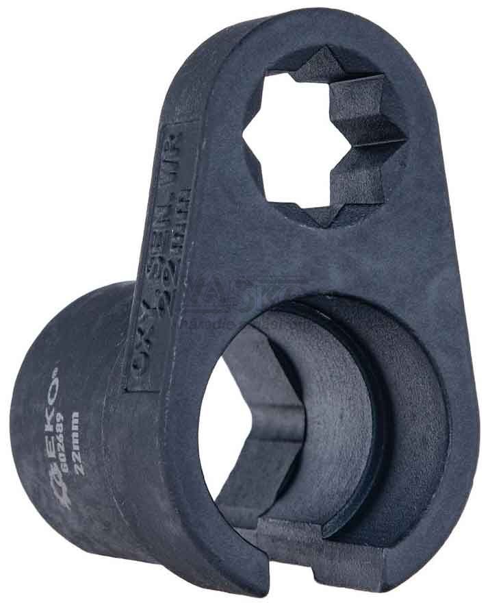Objímka pre lambda sondu 22 mm s upínacím závitom 1/2" určená na montáž a demontáž kyslíkových senzorov (O2) vo výfukových potrubiach a výfukových systémoch.Špeciálny bočný výrez umožňuje prácu bez odpojenia kábla sondy a šesťuholníkový pracovný profil zaisťuje stabilný prenos krútiaceho momentu. Funguje s račňou, predĺžením alebo 1/2" rázovým uťahovákom.