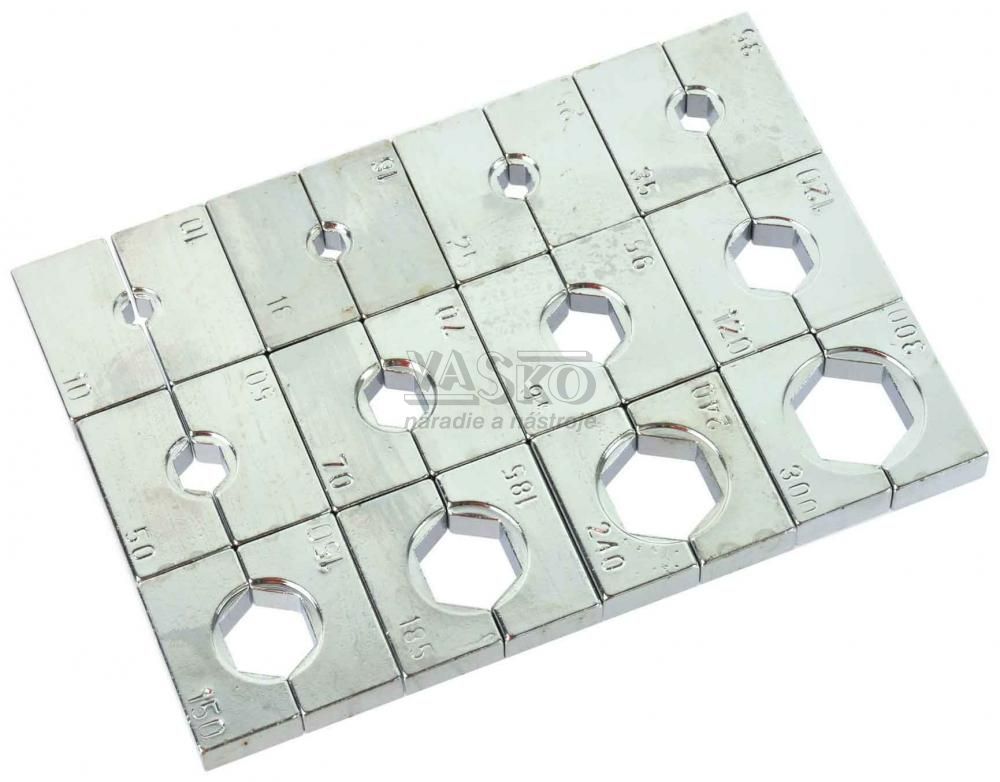 sada 12 matríc vo veľkostiach 10-300 mm 2 ; vyrobené z kalenej ocele s chrómovou úpravou
