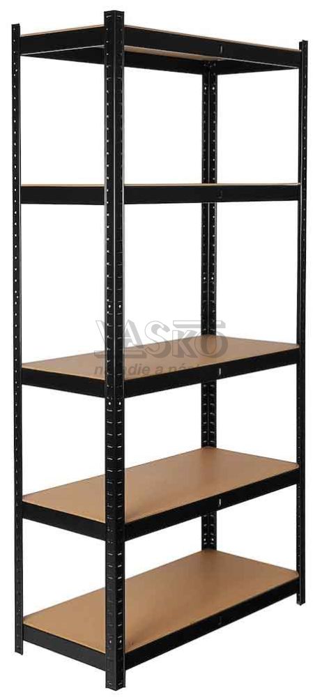 - Kovový regál s 5 policami z MDF dosky 1800 x 900 x 400 mm, nosnosť police 265 kg, GEKO