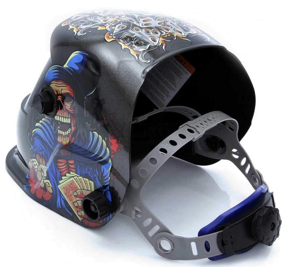 Kukla zváračska samostmievacia s nálepkou kostlivca, zorník 95 x 43 mm, MAR-POL
