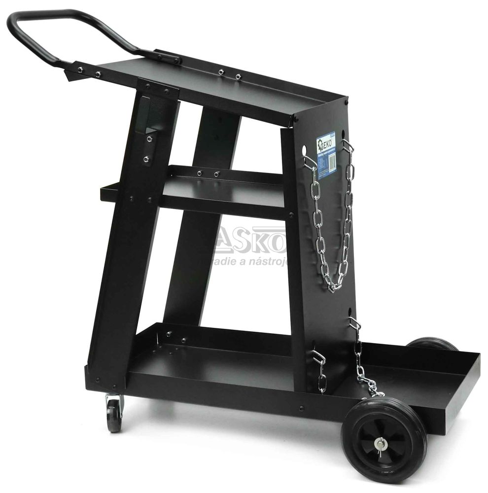 Zváračský vozík s rukoväťou. Vhodné pre zváračky MIG, MMA, MAG a TIG.- Vyrobené z práškovo lakovanej ocele