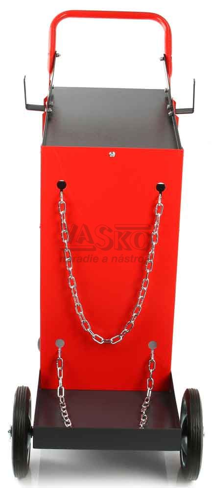 spolu s dvoma reťazami na jeho stabilizáciu. Vozík je vybavený 4 gumenými kolieskami pre jednoduchú prepravu. Predné kolesá - otočné,