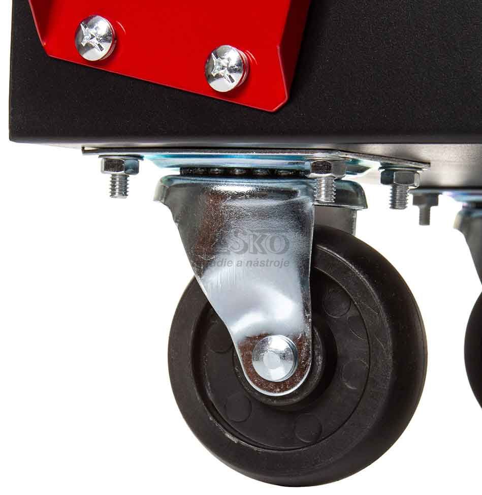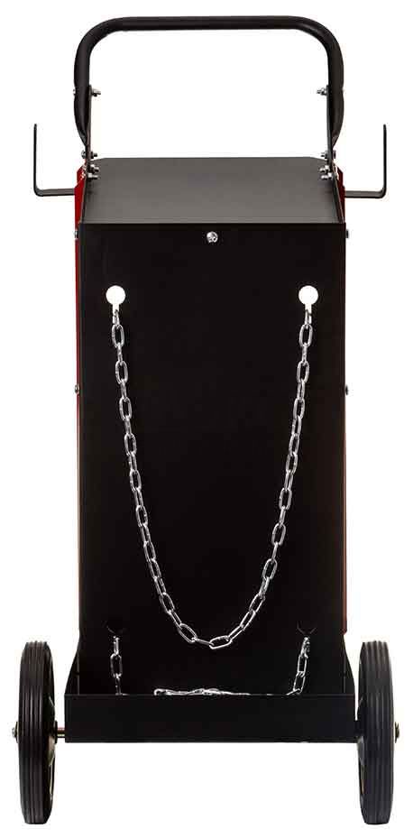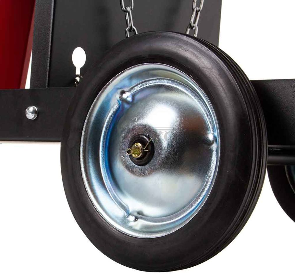 spolu s dvoma reťazami na jeho stabilizáciu. Vozík je vybavený 4 gumenými kolieskami pre jednoduchú prepravu. Predné kolesá - otočné,