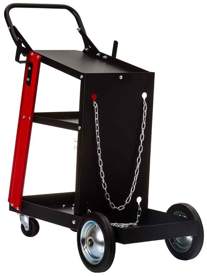 Vozík určený na prepravu zváracích strojov s valcami a príslušenstvom. Možno použiť so všetkými zváracími strojmi MMA, MIG, TIG.Pri zváraní s valcom s ním nemusíme ručne hýbať. Do ďalších políc sa zmestí príslušenstvo potrebné pri práci, takže