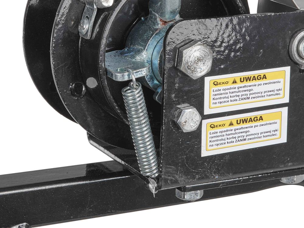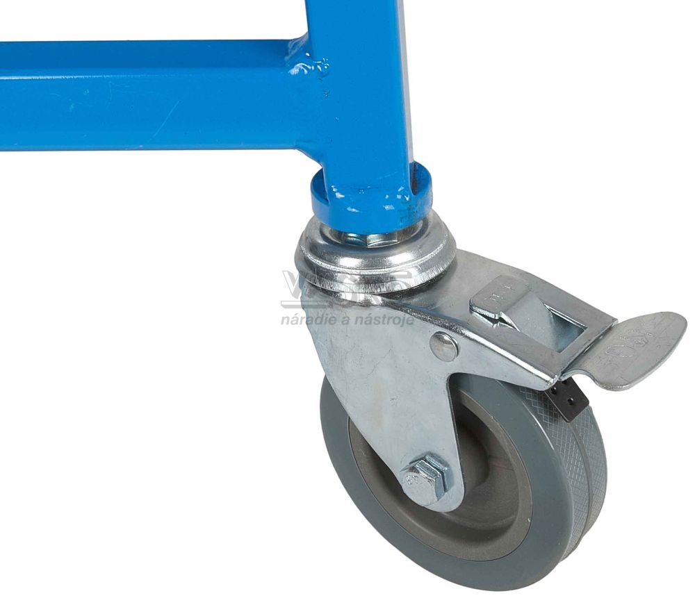 Mobilita vďaka otočným kolieskam s brzdami – Zdvihák je vybavený štyrmi otočnými kolieskami, ktoré umožňujú jednoduché premiestňovanie zariadenia po stavenisku. Každé koliesko má brzdu, ktorá zaisťuje stabilitu zdviháka počas prevádzky a zabraňuje náhodnému pohybu. Ďalšie piate transportné koleso pod hlavným stĺpikom zdviháka umožňuje jednoduchý pohyb zloženého zdviháka, čo výrazne zjednodušuje prepravu.