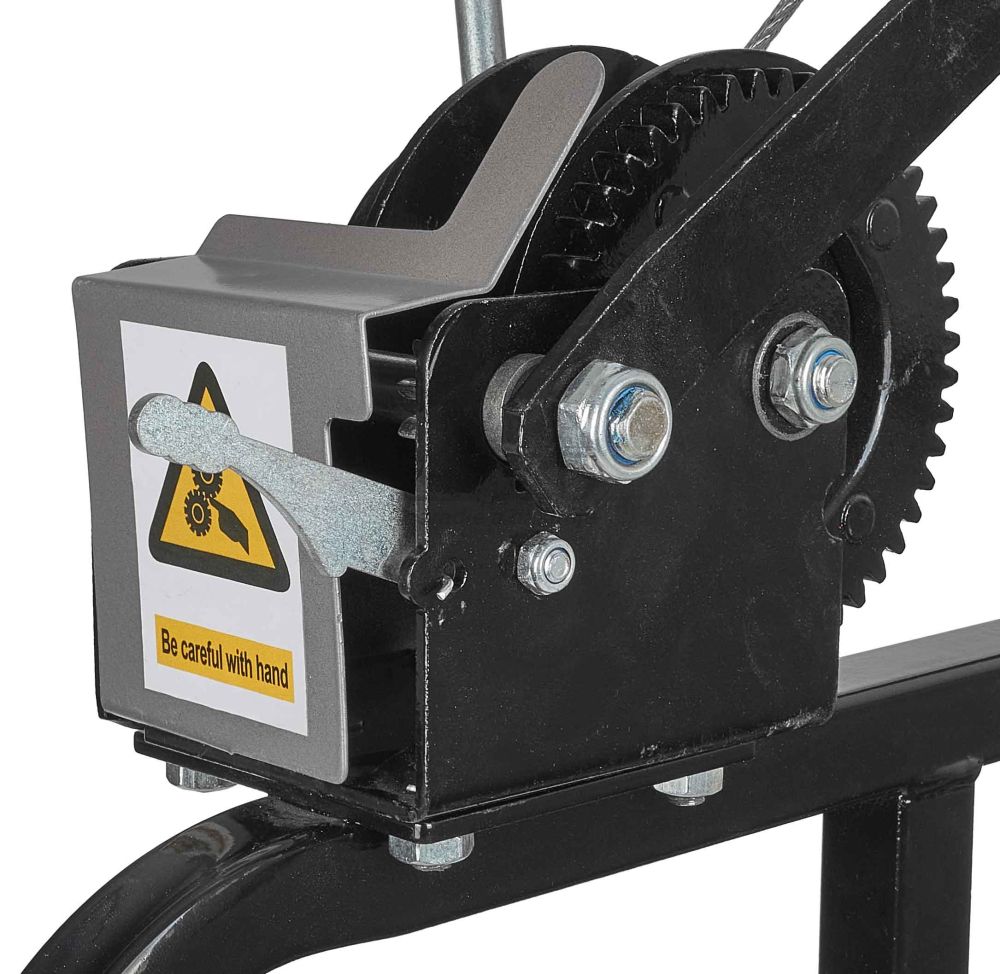Mechanizmus skladania nôh s račňou – Račňový mechanizmus umožňuje rýchle skladanie a rozkladanie nôh zdviháka, čím sa výrazne skracuje čas na nastavenie a prepravu. Zloženie zdviháka do kompaktnej veľkosti trvá len niekoľko sekúnd, čo je mimoriadne pohodlné pri práci na rôznych miestach.