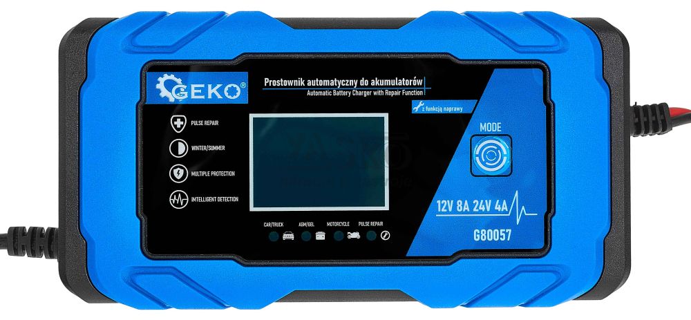 - Nabíjačka autobatérii s funkiou opravy, 230 V, 12/24V, intenzita prúdu 8A, AGM/GEL, GEKO