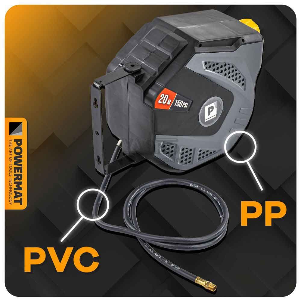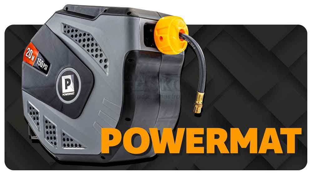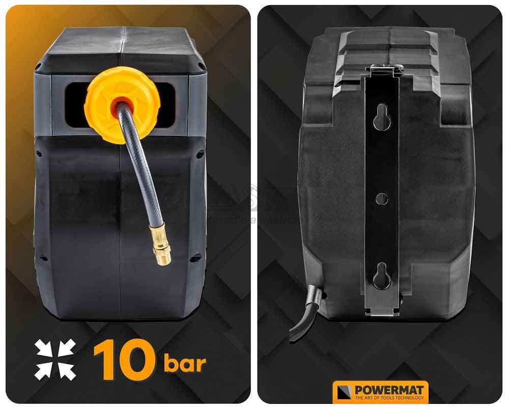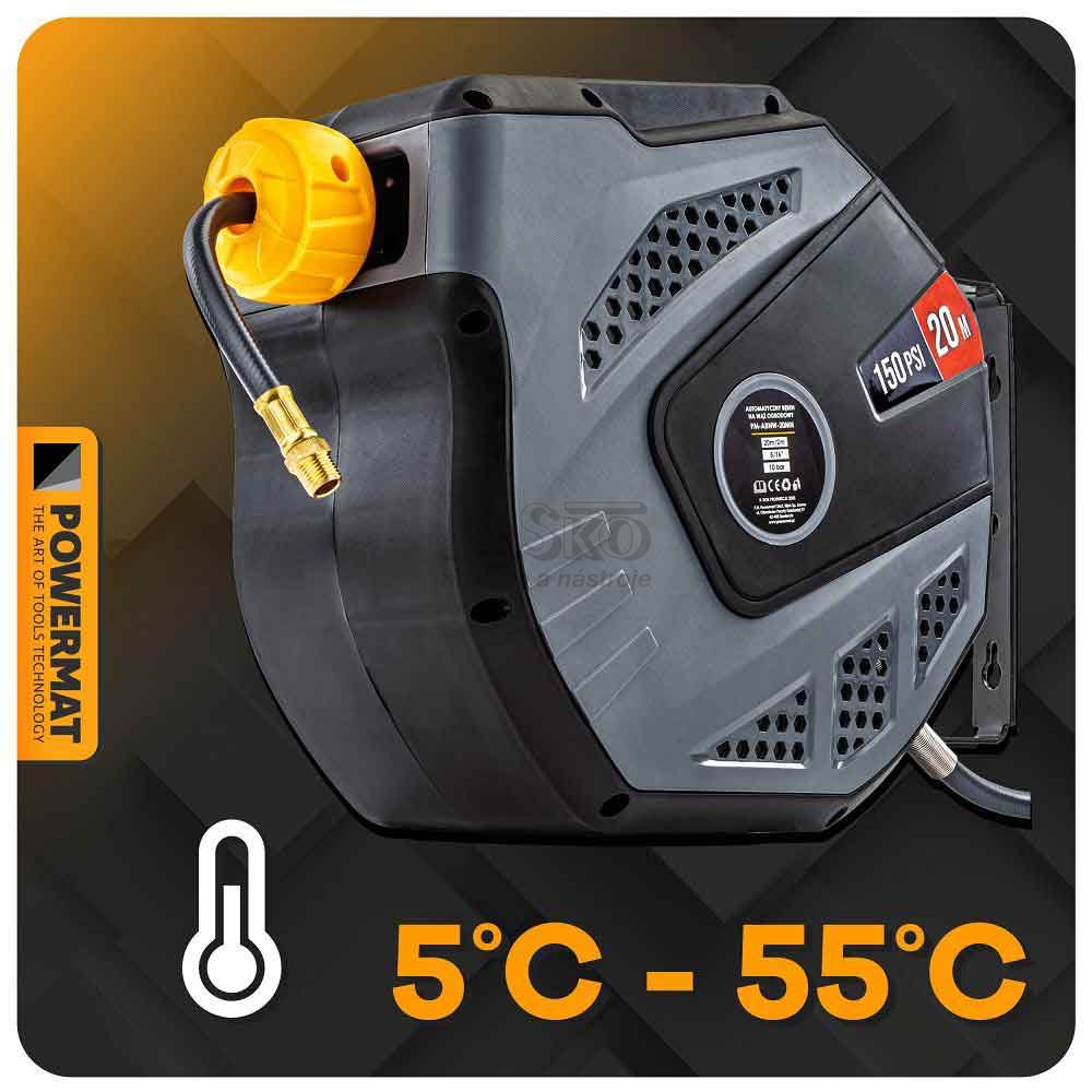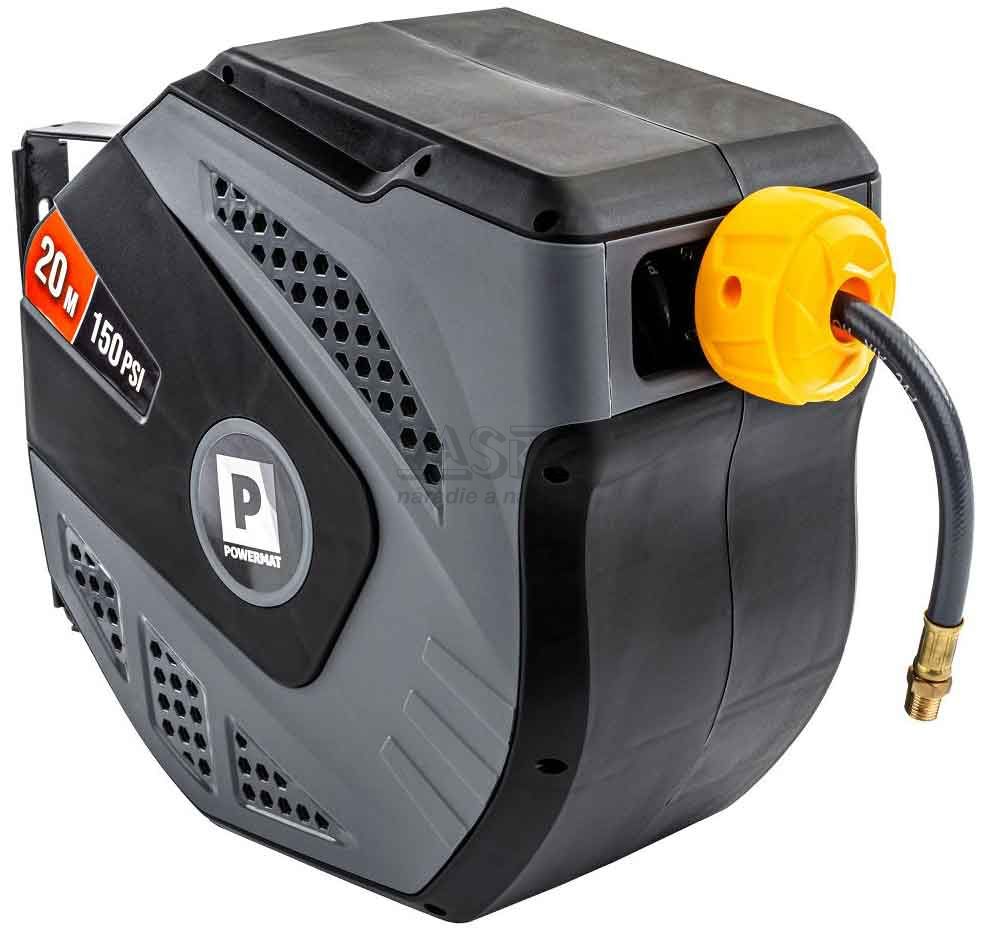 - Navíjací bubon s držiakom na stenu s hadicou na vzduch, 8 x 12 mm, dĺžka 20 m, POWERMAT