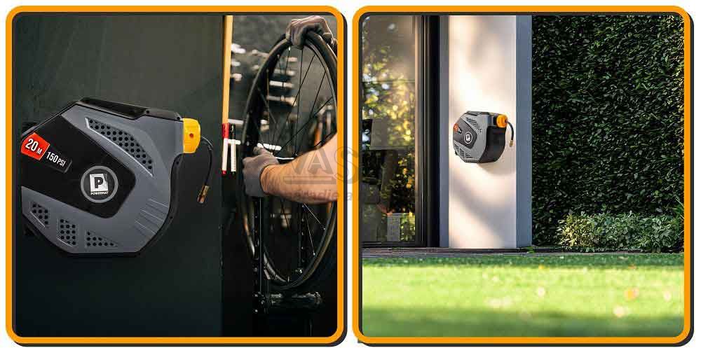 Automatický pneumatický navijak na hadicu je ideálny pre dielne, záhrady, záhrady a domáce technické priestory.
