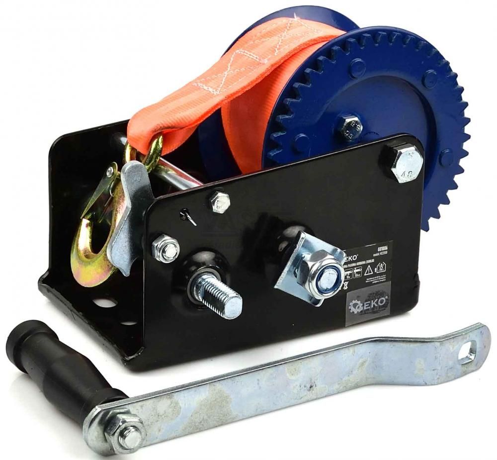 - Naviják ručný s remeňom, max. zaťaženie 1.133 kg, remeň 10 m, šírka 50 mm, GEKO