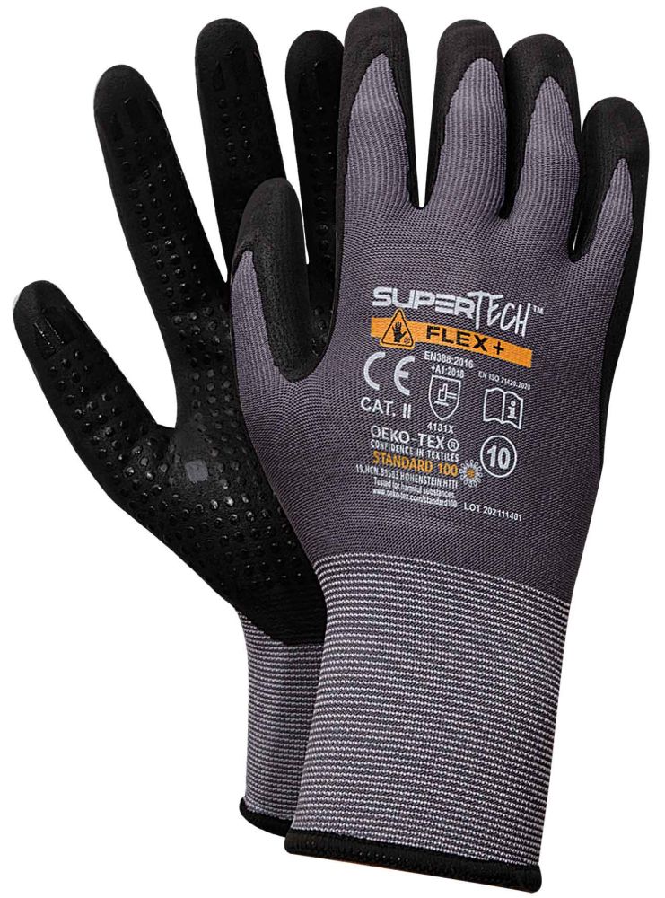 Ochranné rukavice SUPER TECH FLEX+, mikropenový nitril, PVC terčíky, veľkosť 8, VASKO