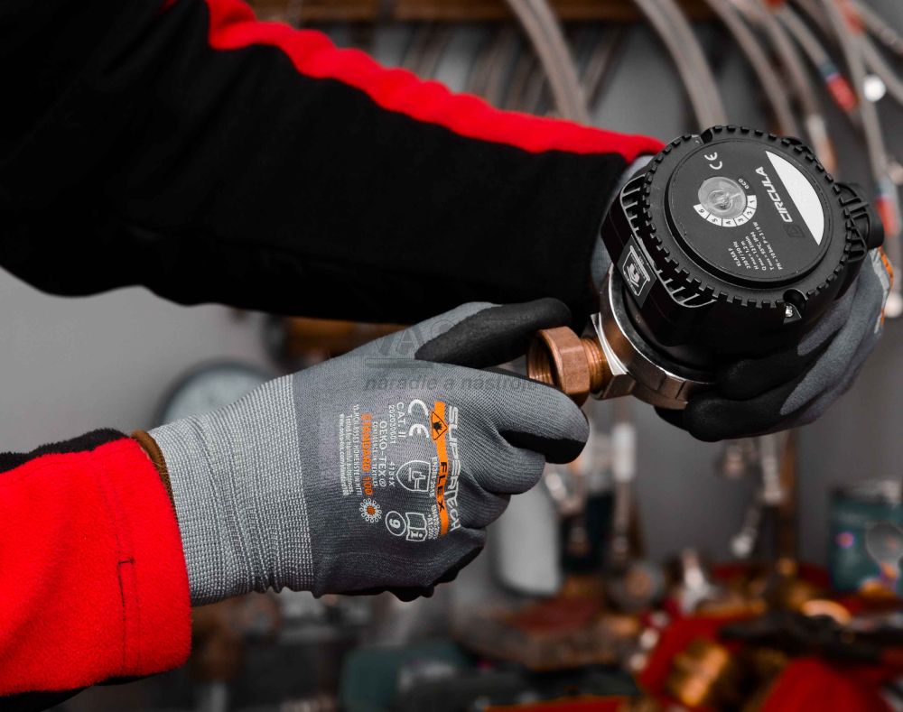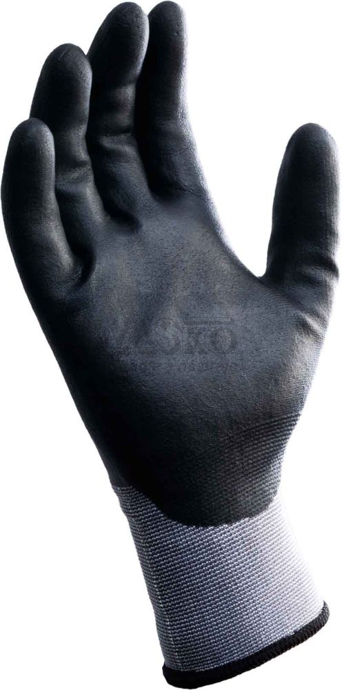 Ochranné rukavice vyrobené z nylonu a spandexovej podšívky v sivej farbe, potiahnuté mikropenovým nitrilom v čiernej farbe. Ide o 100 % vysoko kvalitný povlak z nitrilbutadiénového kaučuku dovezeného z Nemecka.Vlastnosti: