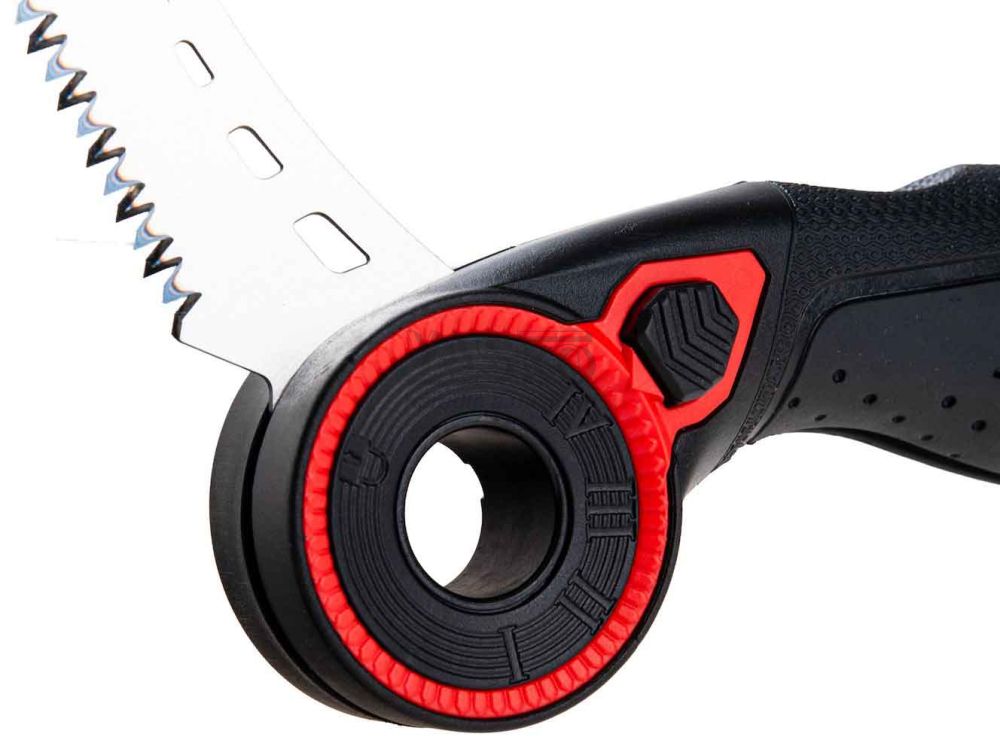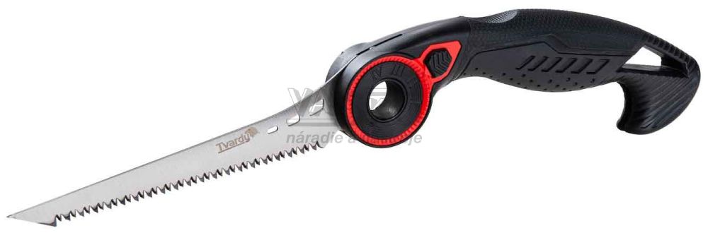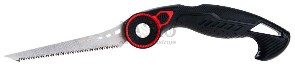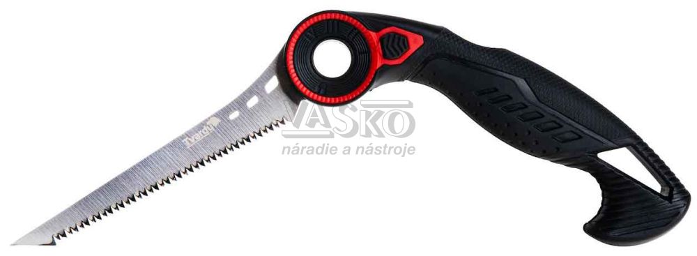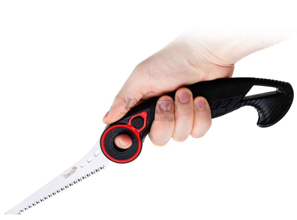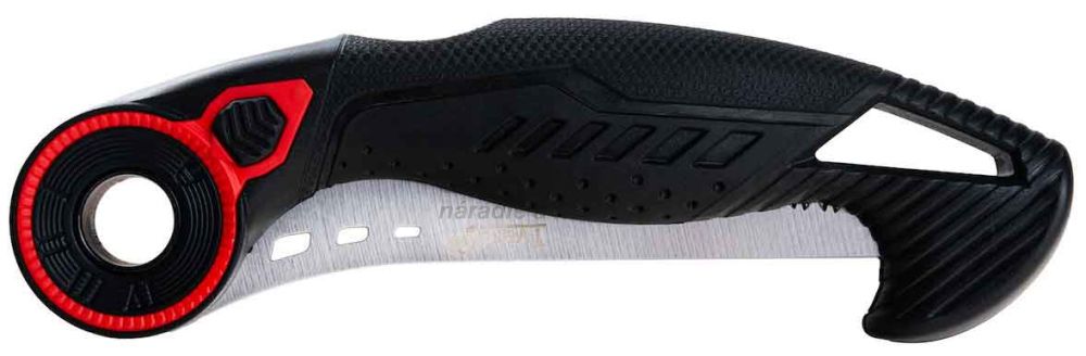 Rukoväť z TPR je ergonomická, ľahká a má čierno-červenú povrchovú úpravu. Vďaka tomu píla pohodlne padne do ruky a nešmýka sa ani pri dlhšom používaní.