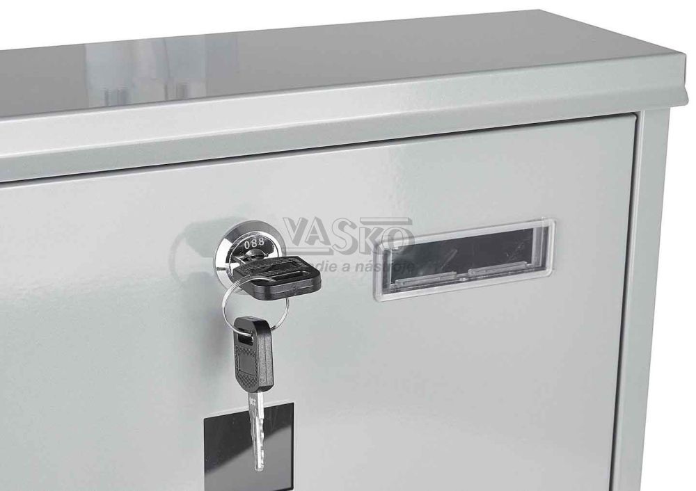 Poštová schránka sa otvára dvierkami uzamykateľnými kľúčom (dva kľúče sú súčasťou balenia), čo zaisťuje bezpečnosť vašej uloženej pošty.