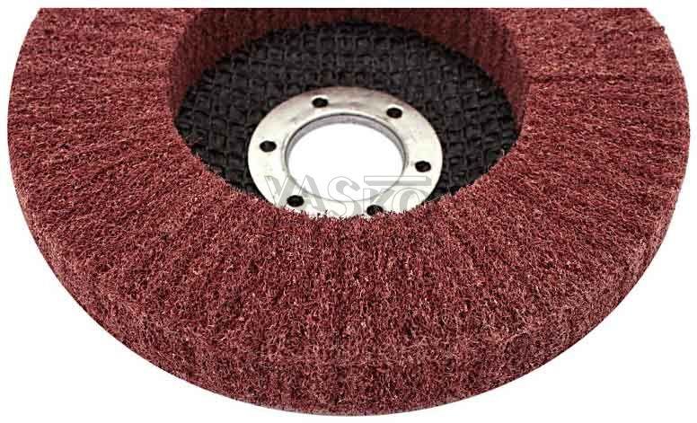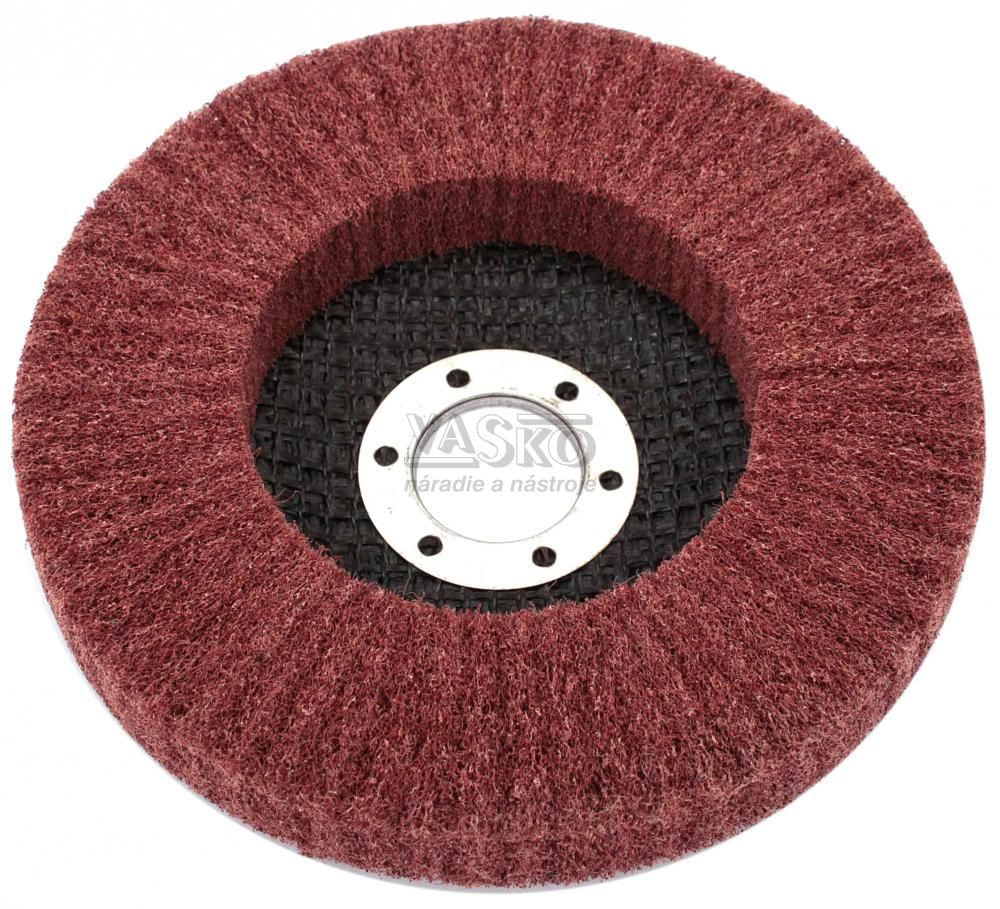 Mäkký čistiaci kotúč z netkanej textílie je nástroj určený na použitie na uhlových brúskach, slúži na odstraňovanie hrdze, čistenie zvarov, odstraňovanie starých lakov a náterov, ako aj na opracovanie betónových a kamenných povrchov. Lamelový kotúč z netkanej textílie zaisťuje efektívne čistenie, leštenie, brúsenie a satinovanie bez popálenia a zachováva si svoju štruktúru, čo umožňuje opakované použitie. Brúsna netkaná textília bola obohatená o brúsny papier, ktorý zvyšuje účinok obrusovania.Vlastnosti: