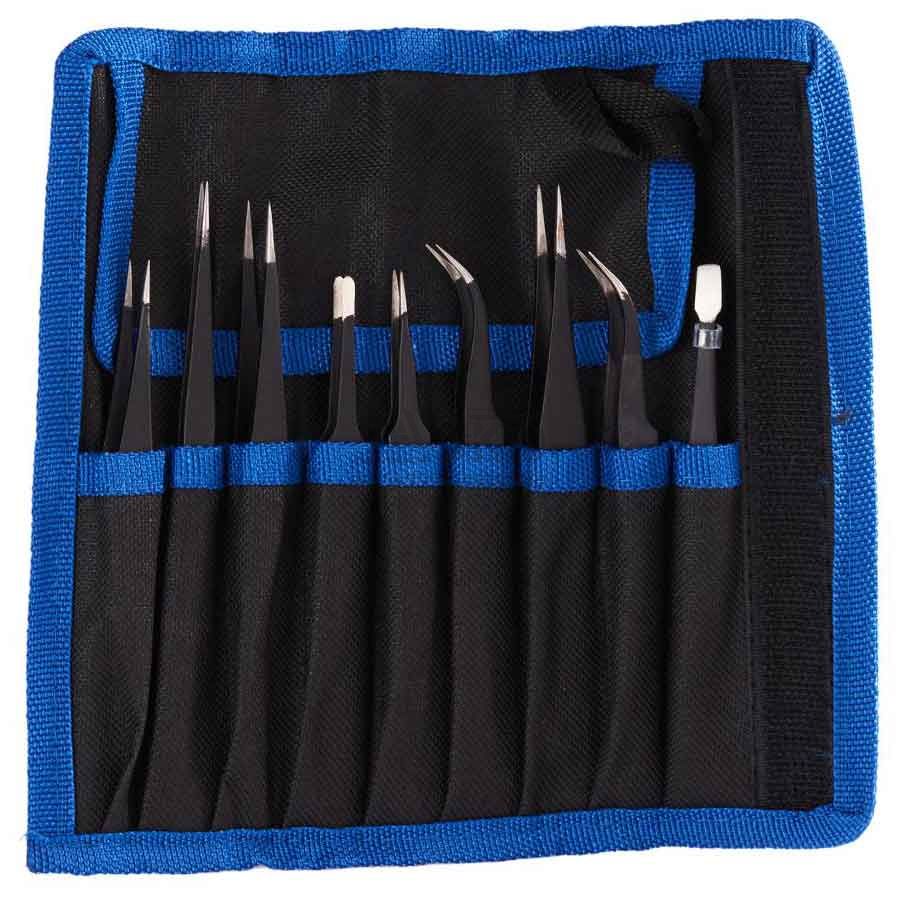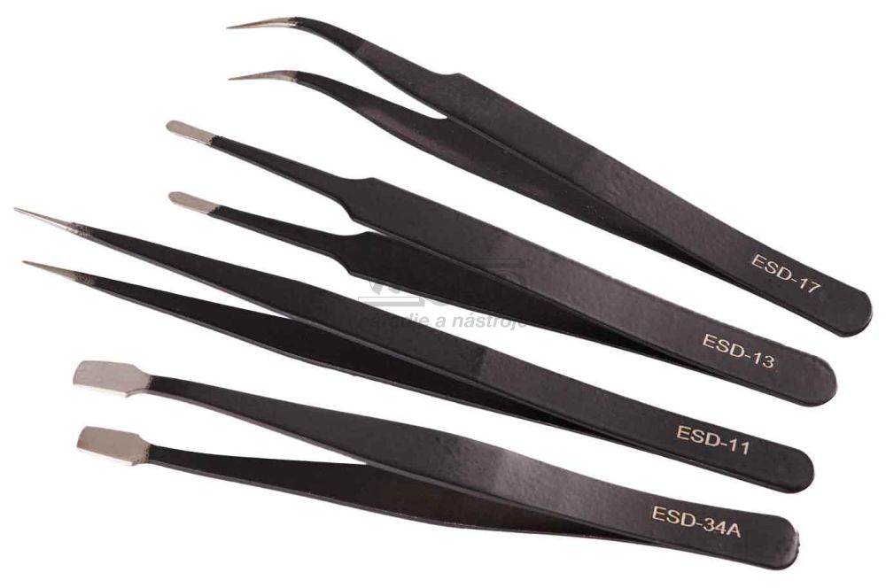 Antistatická pinzeta 12-14cm na vykonávanie presného zdvíhania a presúvania malých prvkov. Ideálne pre použitie v elektronike, šperkoch, kozmeteológii, modelovaní, akváriách, domácnosti a mnohých ďalších oblastiach. Sada obsahuje pinzetu rôznych tvarov a veľkostí pre všestranné použitie. Pinzety majú hrúbku 0,15 mmHlavné vlastnosti: