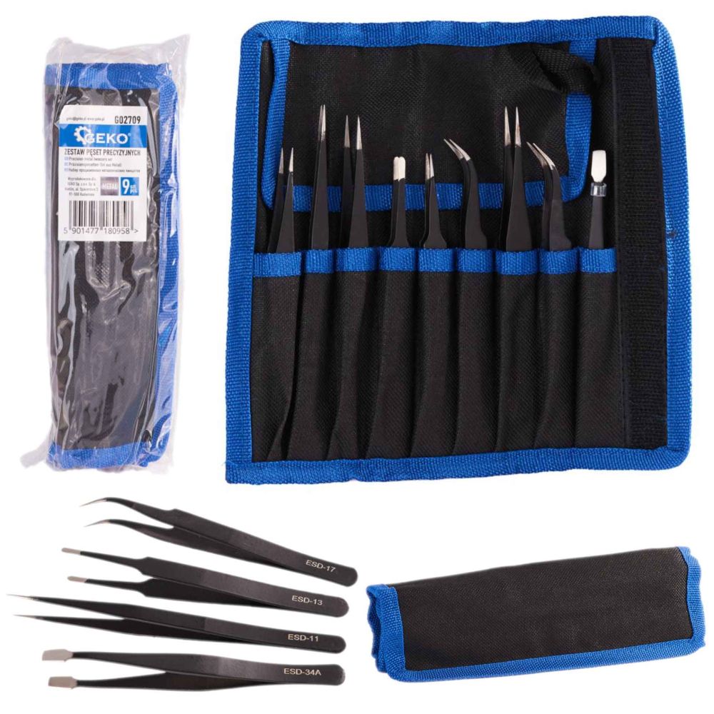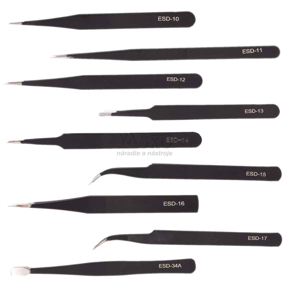 - Sada antistatických nerezových pinziet, 9-dielna sada, GEKO