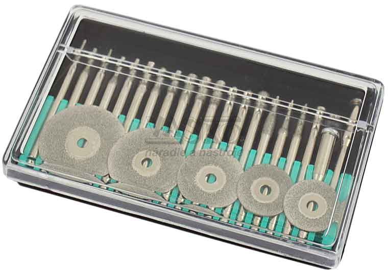 - Priemery mini diamantových kotúčov: 25 mm, 22 mm, 19 mm, 16 mm (2 kusy)