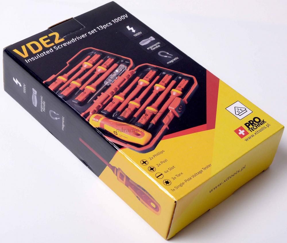 13ks 1000V izolované elektrotechnické skrutkovače sú kvalitné náradie s certifikovanou VDE 1000V izoláciou. Každý kus je testovaný vo fáze postprodukcie, aby bola zaistená najvyššia úroveň bezpečnosti pri používaní. Skrutkovače sú vyrobené z CrV ocele, vďaka čomu sú odolnejšie voči krúteniu ako bežná oceľ. Sú zabalené v estetickej a pevnej kazete, ktorá uľahčuje skladovanie.Vlastnosti: