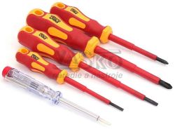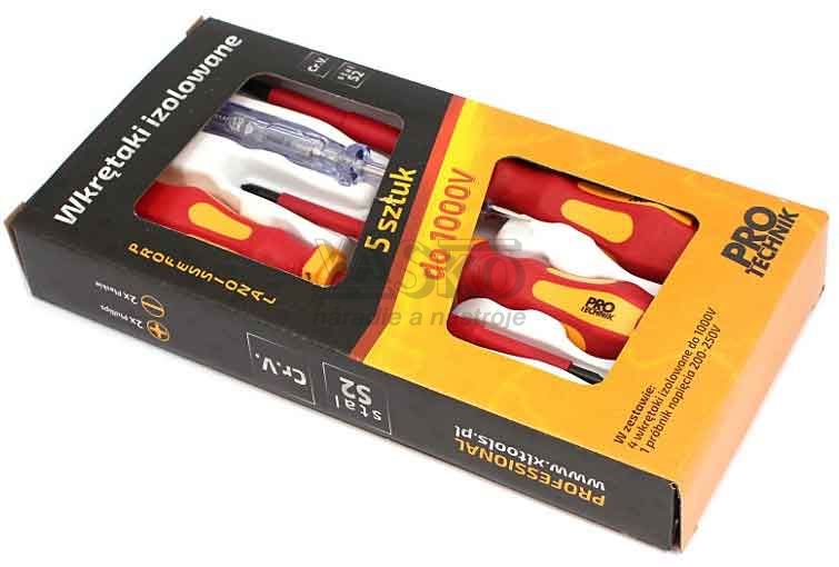 - Sada elektrikárskych skrutkovačov 5-dielna, žltočervená rukoväť, 1.000V, PRO-TECHNIK