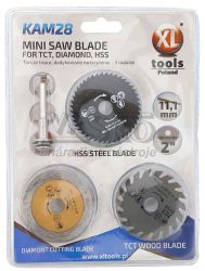 Sada rezných kotúčov je určená na presné rezanie dreva, ne železné kovy, hliník, plasty, keramika a kameň. Využitie nájde pri hobby aj profesionálnej práci, kde sa vyžaduje vysoká presnosť a kvalita rezu.