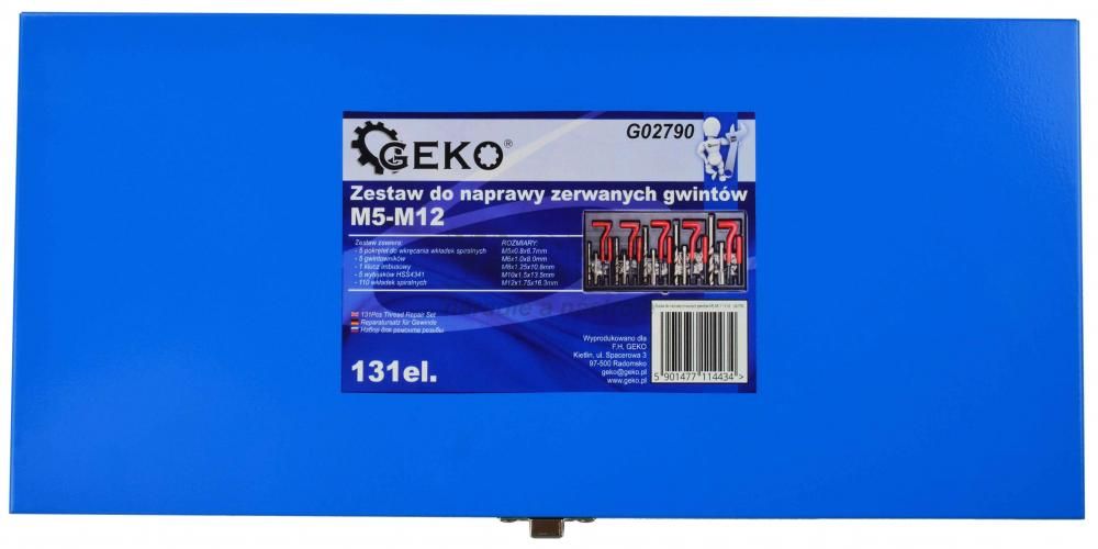 Sada na opravu poškodených závitov M5-M12, 131-dielna, GEKO