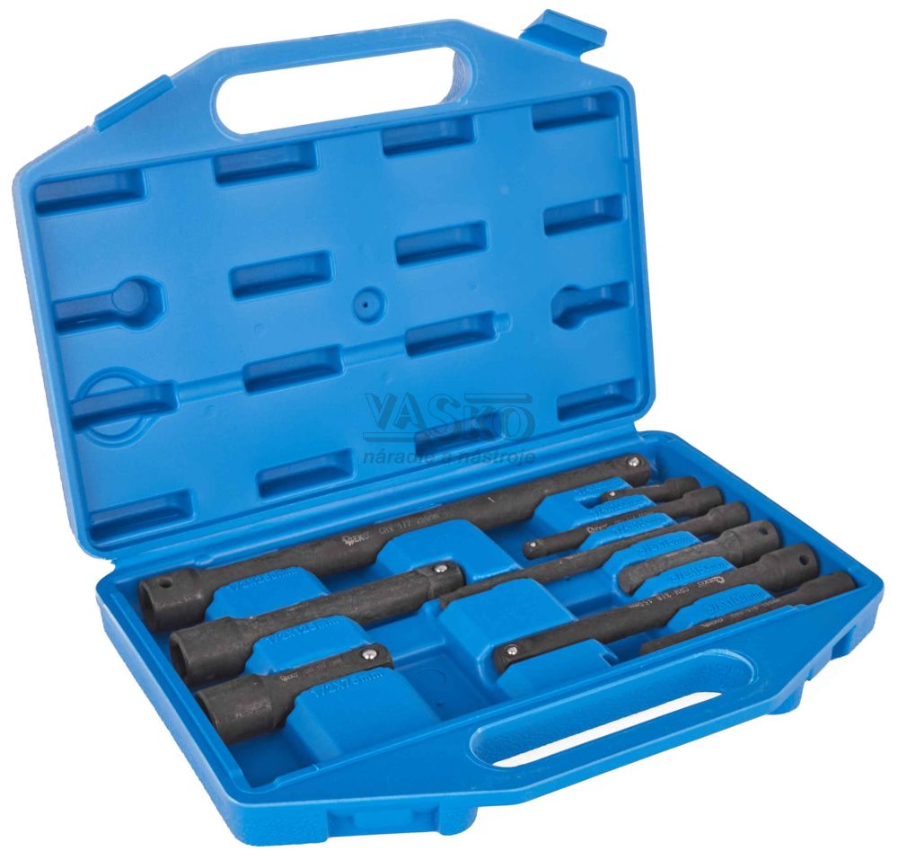 Sada nadstavcov pre rázové uťahovanie, 1/4" 3/8" 1/2", 9-dielna sada v kazete, GEKOTáto sada obsahuje komplexný rad nástavcov vrátane 1/2" 250 mm, 125 mm a 75 mm, 1/4" 50 mm, 100 mm a 150 mm a 3/8" 75 mm, 100 mm a 150 mm. Tieto nadstavce sú vyrobené z odolného materiálu CrV a sú navrhnuté tak, aby odolali aplikáciám s ťažkými nárazmi.
