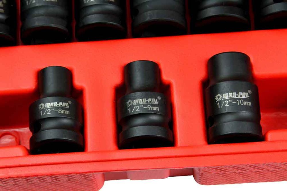 Sada priemyslových krátkych a predĺžených hlavíc 6HRAN 1/2" 8-32 mm, 35-dielna, MAR-POLVeľká sada 1/2" rázových násad?