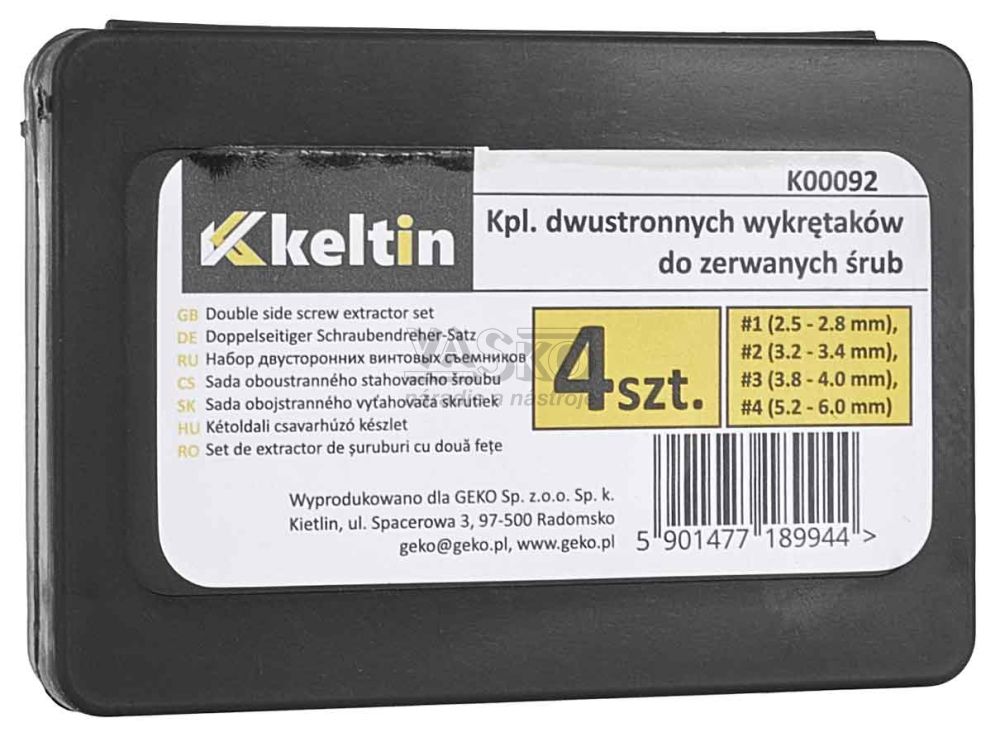 - Sada vyťahovačov zalomených skrutiek 4-dielna, KELTIN