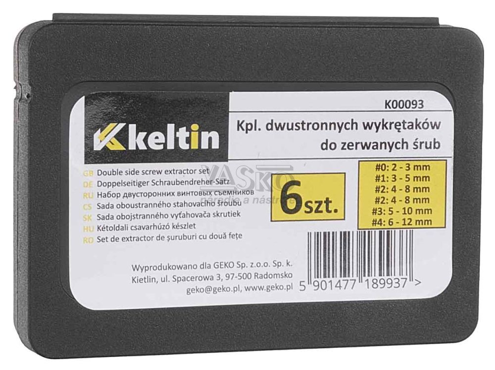 - Sada vyťahovačov zalomených skrutiek 6-dielna, KELTIN