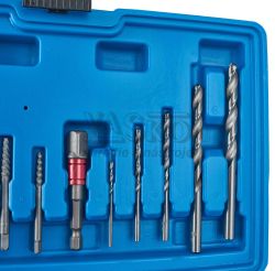Sada na vyťahovanie poškodených skrutiek je ideálnym produktom na odstránenie poškodených čapov, skrutiek, mazacích armatúr a podobných prvkov.Táto profesionálna sada náradia nájde uplatnenie ako v autodielňach, tak aj vo výrobných závodoch.