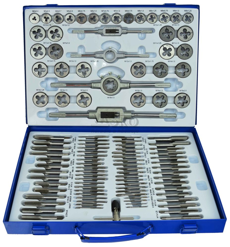 Sada závitníkov a závitových očiek 110- dielna v kazete M2-M18, GEKO