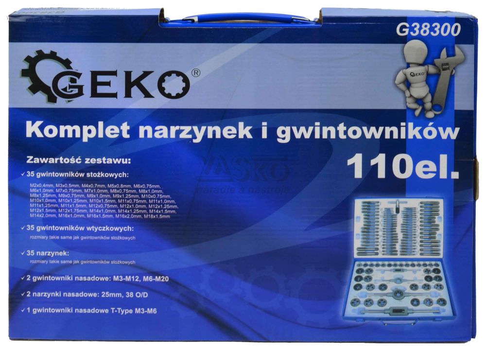 - Sada závitníkov a závitových očiek 110- dielna v kazete M2-M18, GEKO