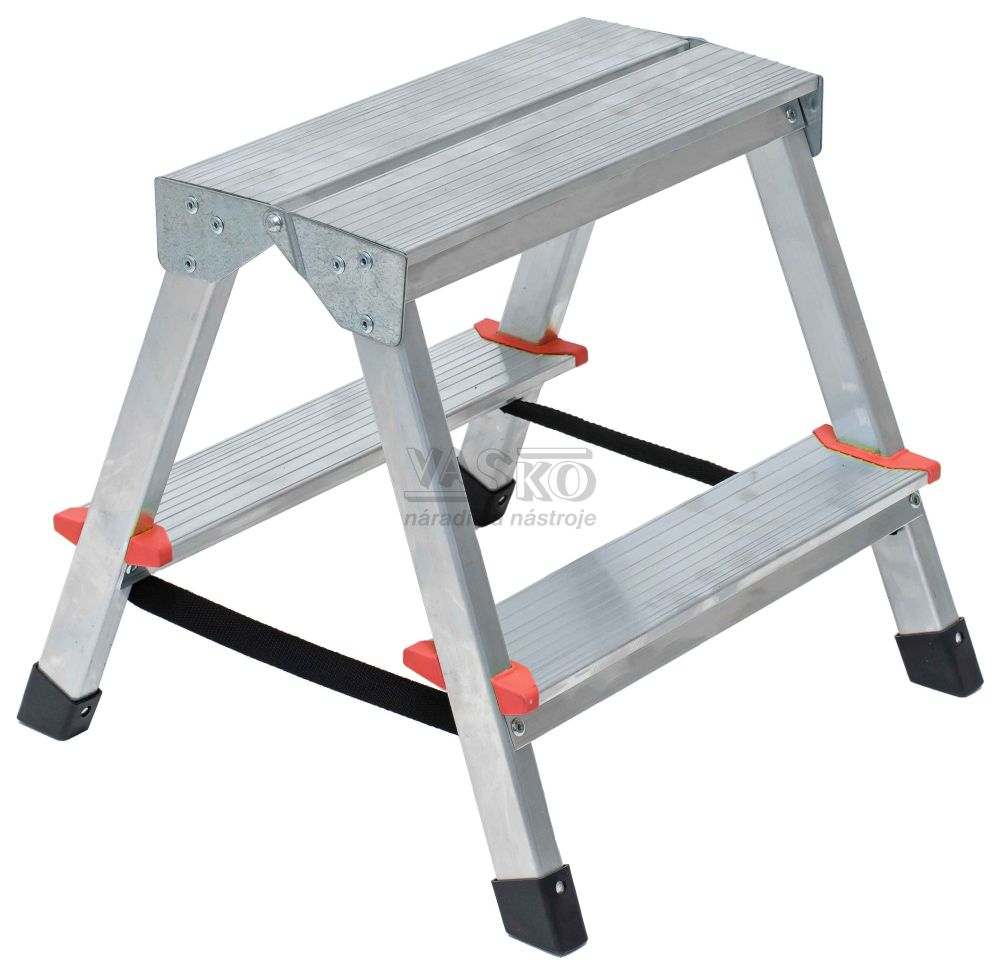 Schodíky hliníkové obojstranné - 2 stupne, 38 cm, nosnosť 120 kg, VASKO