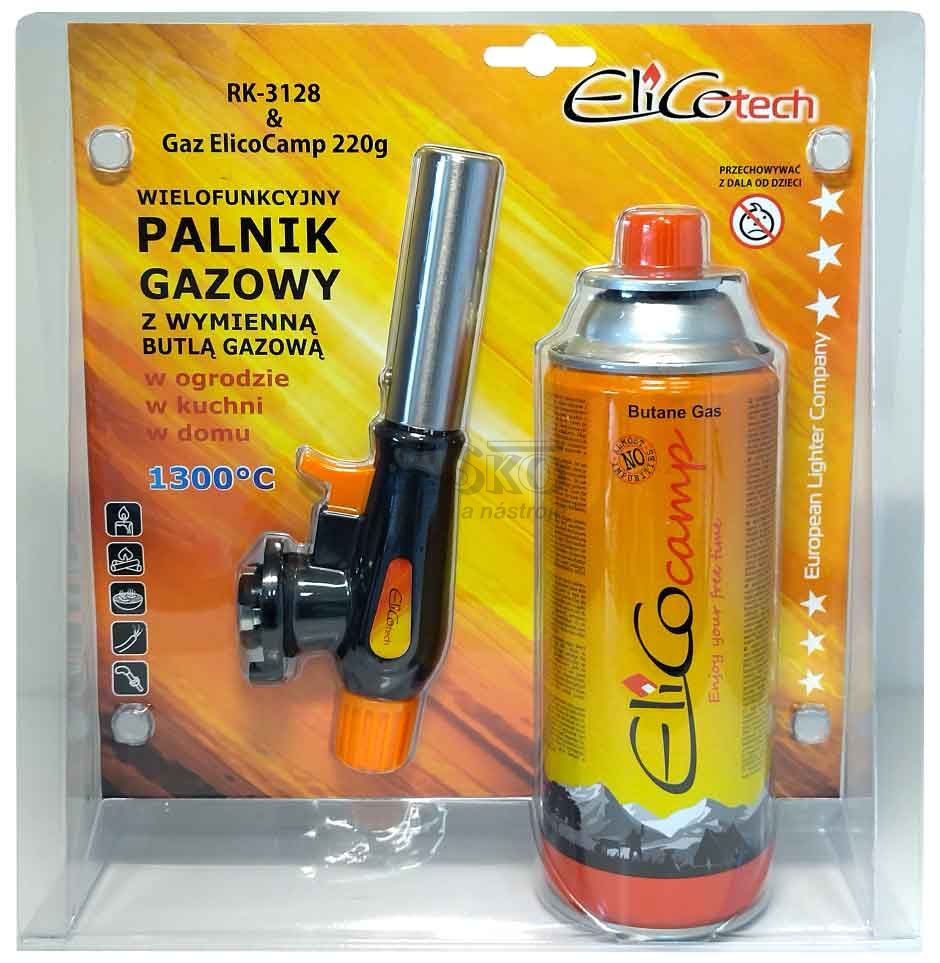 Spájkovacia lampa s piezo zapaľovačom a kartušou 220g, otočný uzáver, ELICO