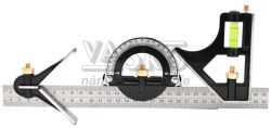 Univerzálny viacúčelový uholník je presný nástroj určený na meranie a značenie v rôznych dielňach. Toto náradie vyrobené z kombinácie nehrdzavejúcej ocele a hliníka je vybavené radom funkcií vrátane uhlomeru, pravítka, pravítka, hĺbkomeru, vodováhy a štvorcov rôznych tvarov. Metrická stupnica je vyrytá a pokrytá čiernou farbou, čo zvyšuje čitateľnosť údajov. Dotykové pero umiestnené v kryte uľahčuje označovanie nameraných vzdialeností. Všetky komponenty nástroja sú mobilné, takže je možné ich posúvať po pravítku a prispôsobiť tak aktuálnym potrebám používateľa. Povrch uholníka je leštený a lakovaný, vďaka čomu je odolný voči vonkajším podmienkam.Rozmery: