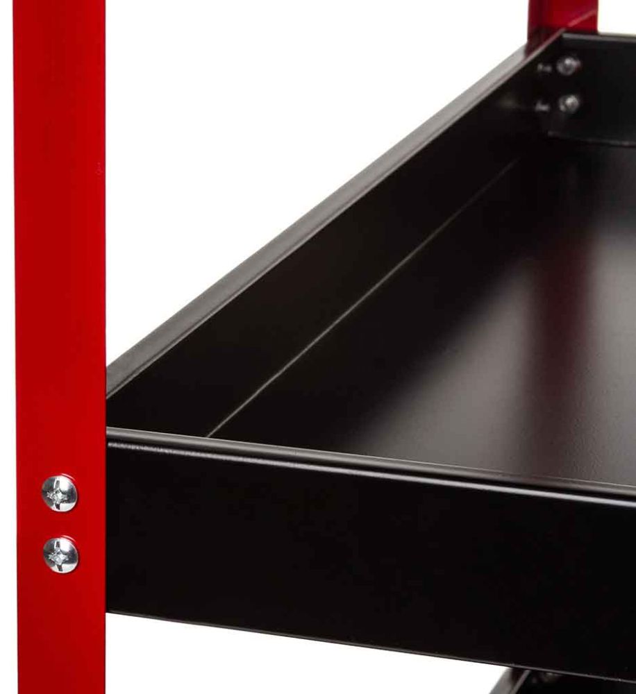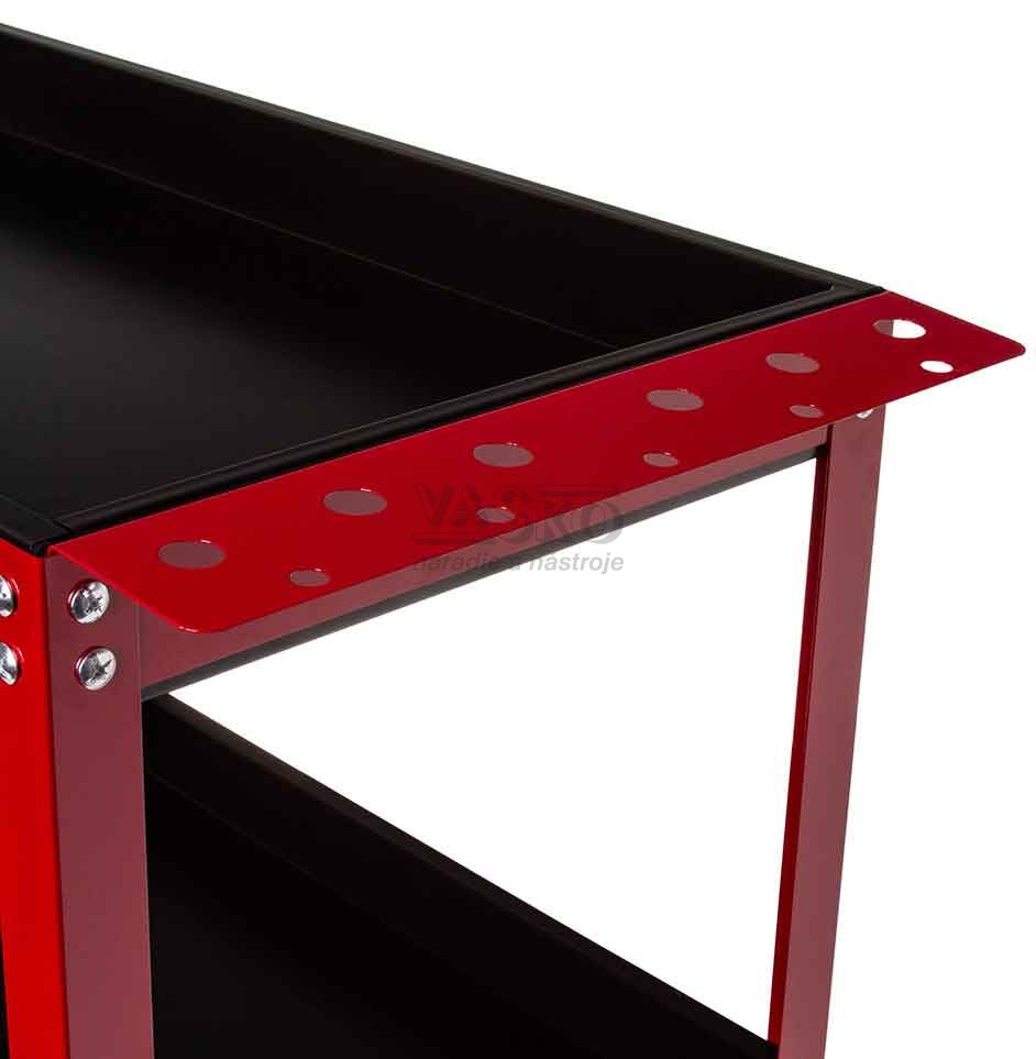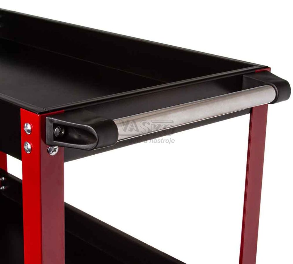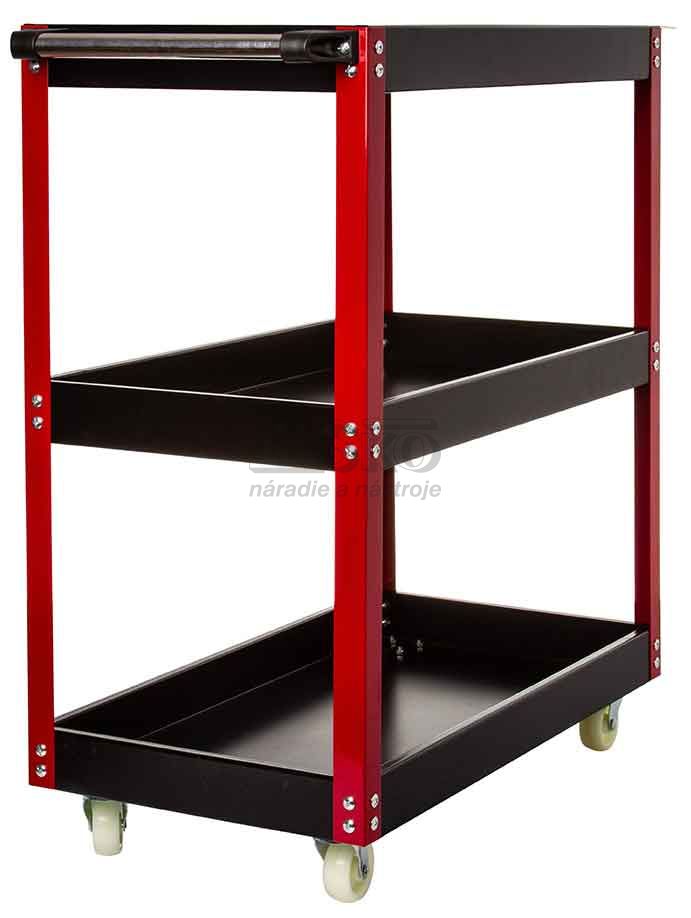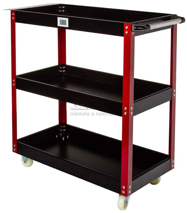 Oceľový vozík s tromi policami. Je ideálny pre dielne a služby a je tiež dobrým riešením pre domácich majstrov. Uľahčuje to prácu, pretože každý nástroj máte vždy po ruke. Je vybavená štyrmi kolesami, dvoma pevnými a dvoma otočnými, a kovovou rukoväťou, ktorá uľahčuje premiestňovanie. Vozík je možné použiť aj na prepravu malých balíkov.Vzdialenosť medzi policami je 27 cm.