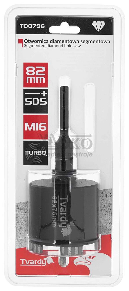 - Vrták diamantový korunkový so stredovým vrtákom, priemer 82 mm, upínanie SDS+, M16, TVARDY