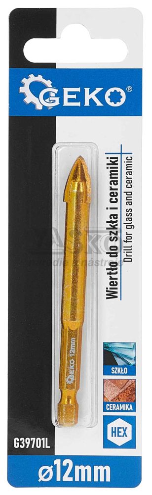 - Vrták do skla a keramiky 12 mm, 4-britý, stopka 1/4", GEKO