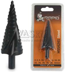 - Vrták stupňovitý 4-32 mm do plechu, HSS TiAIN krok 2mm, rovná drážka, GEKO
